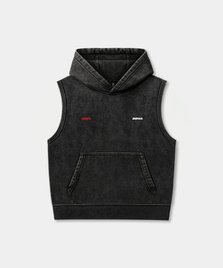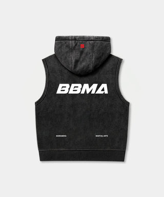 The BBMA x UBKN Relaxed Fit Luxe Sleeveless Pullover Hoodie in Black Wash reworks a heritage-inspired classic with a streetwear twist. Crafted from luxuriously soft cotton fleece, it delivers comfort and warmth in a relaxed silhouette. Stitched arm openings create a clean, sleeveless finish, while a double-layered hood, large kangaroo pocket, and drawstring-free design add modern appeal. Dual-branded chest prints, a bold BBMA logo across the back, and signature hem details define this limited-edition piece, made for everyday wear and post-training downtime.